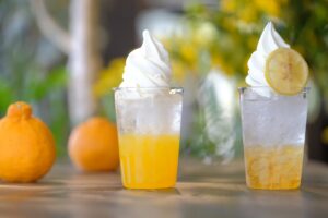 園内では、メインが選べる束ランチセットや地元の柑橘を使った爽やかドリンク、手作りスイーツなど青空の下で楽しめるグルメをご用意。園内にあるカフェYuitではコーヒーマシンを一新し、これまで以上に雑味のないクリアな味わいにリニューアルします。