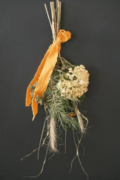 ひたち海浜公園のアナベルをドライフラワーにして、フラワーパーク園内の草花と一緒に、秋を感じるフラワーアレンジメント「スワッグ」をつくります。