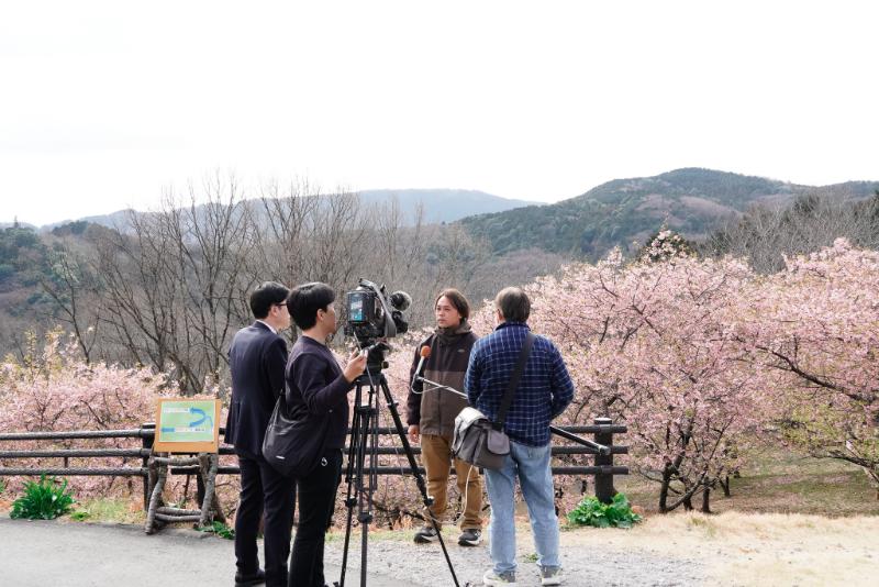 NHKが河津桜の取材にきました!明日から桜フェスタを開催